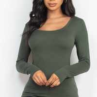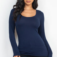 Scoop Neck Solid Long Sleeve Cozy Top - Passion 4 Fashion USA