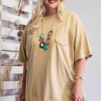 RIBBED AND ROUND NECKLINE. DROPPED SHOULDER SLEEVE. FAKE BUST POCKET DETAILING. BOXY AND LOOSE FIT